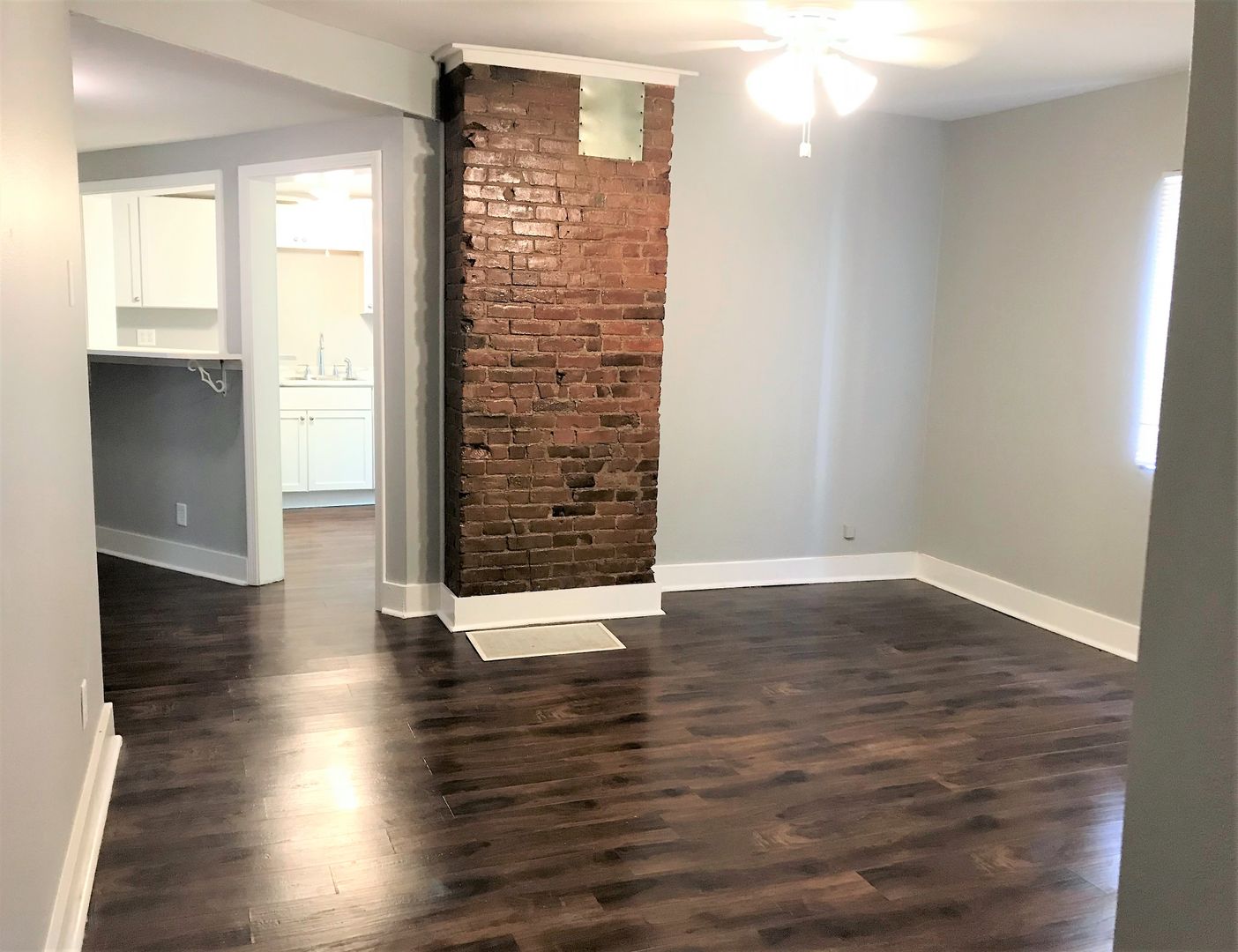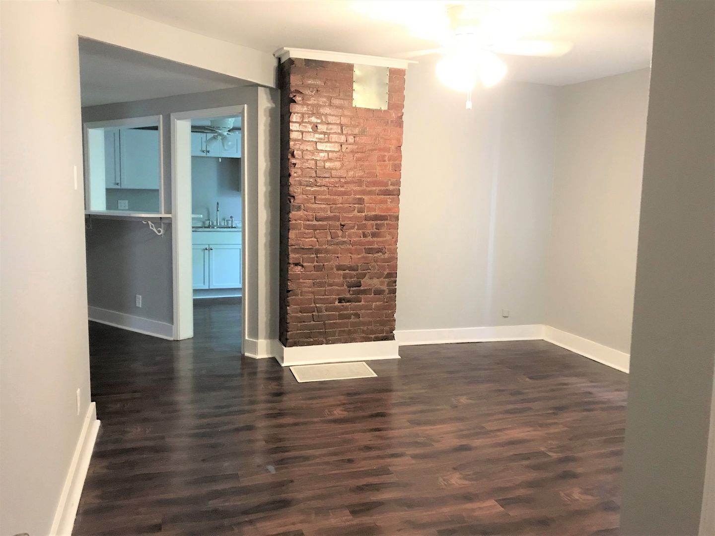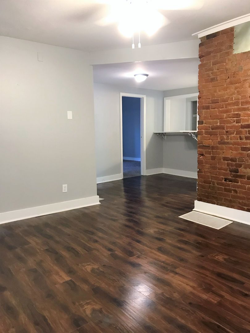 This Apartment Features a Beautiful Exposed Brick wall in the Livingroom, Breakfast bar, Newer Light Fixtures, Vinyl Plank Flooring throughout and carpet in the Bedroom. The Bathroom includes a Bath/Shower combo and Euro Style vanity, There is also an Extra Closet off the Living Room for Added Storage.