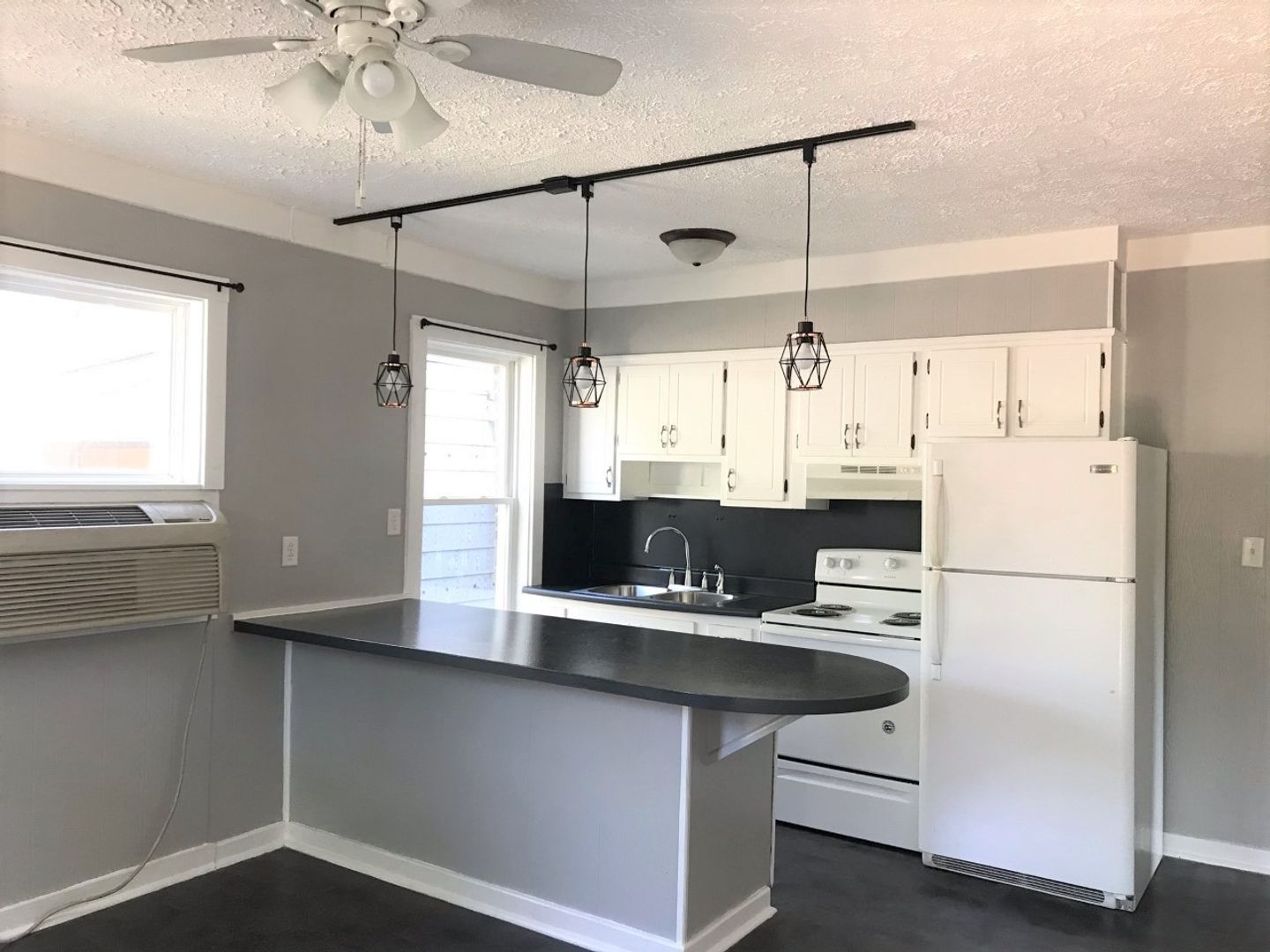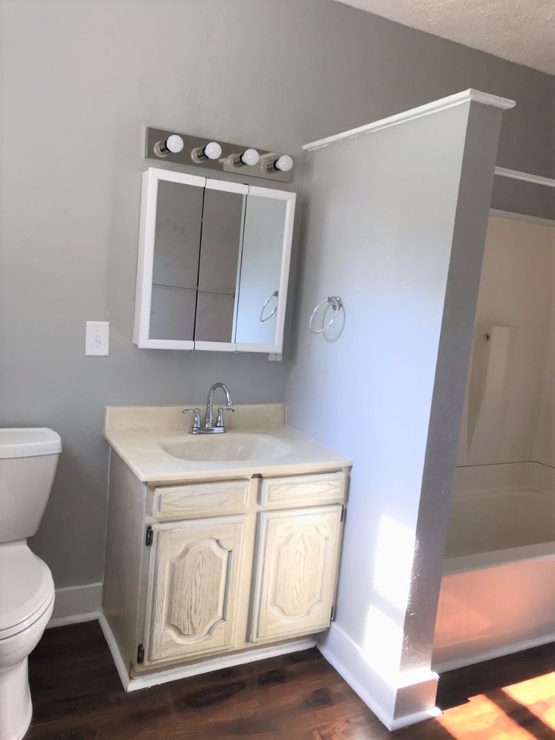 This Adorably cozy Apartment Features A Private Entrance with a Private Deck, An Open Concept Kitchen/Living Room, With a Breakfast Bar. There is an extra walk in closet off the kitchen for extra storage. The Bathroom has a Bath/Shower Combo as well as a Nice Linen Closet. The Bedroom is spacious with 2 closets.