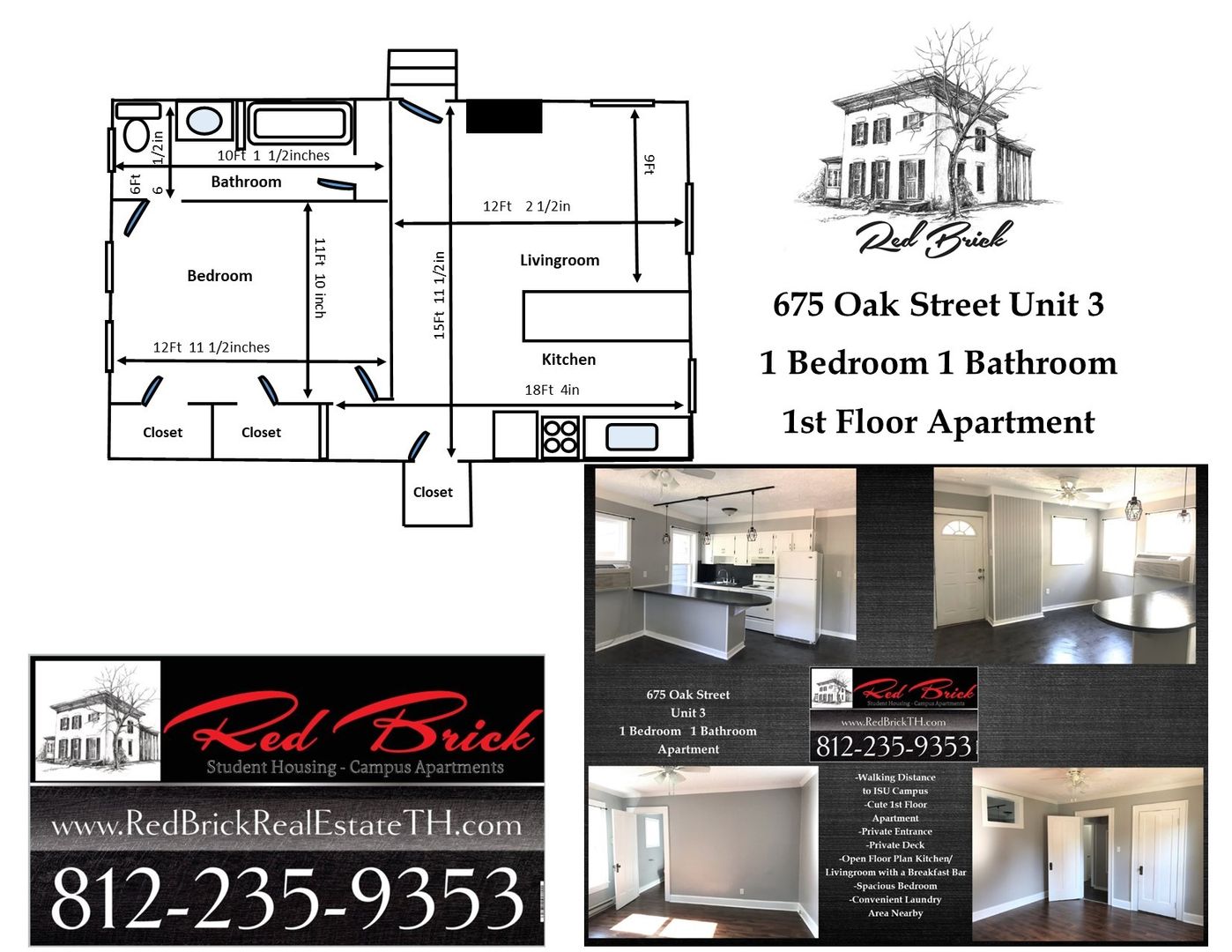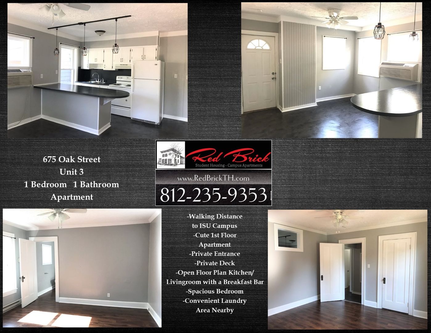 Now Accepting Applications for a 1st Floor 1 Bedroom 1 Bathroom Apartment at 675 Oak Street Unit 3 Within Walking Distance to ISU Campus and Downtown Terre Haute
