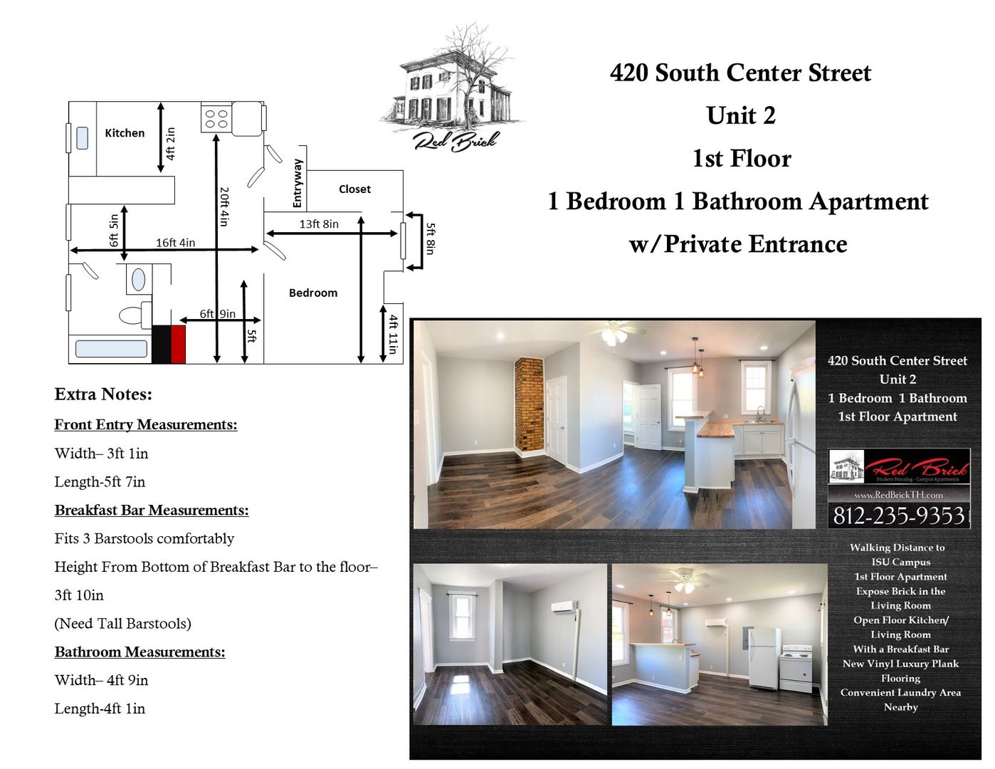 Now Accepting Applications for a Recently Renovated 1st floor 1 Bedroom 1 Bathroom Apartment at 420 South Center Street Unit 2 Within Walking Distance to ISU Campus.
