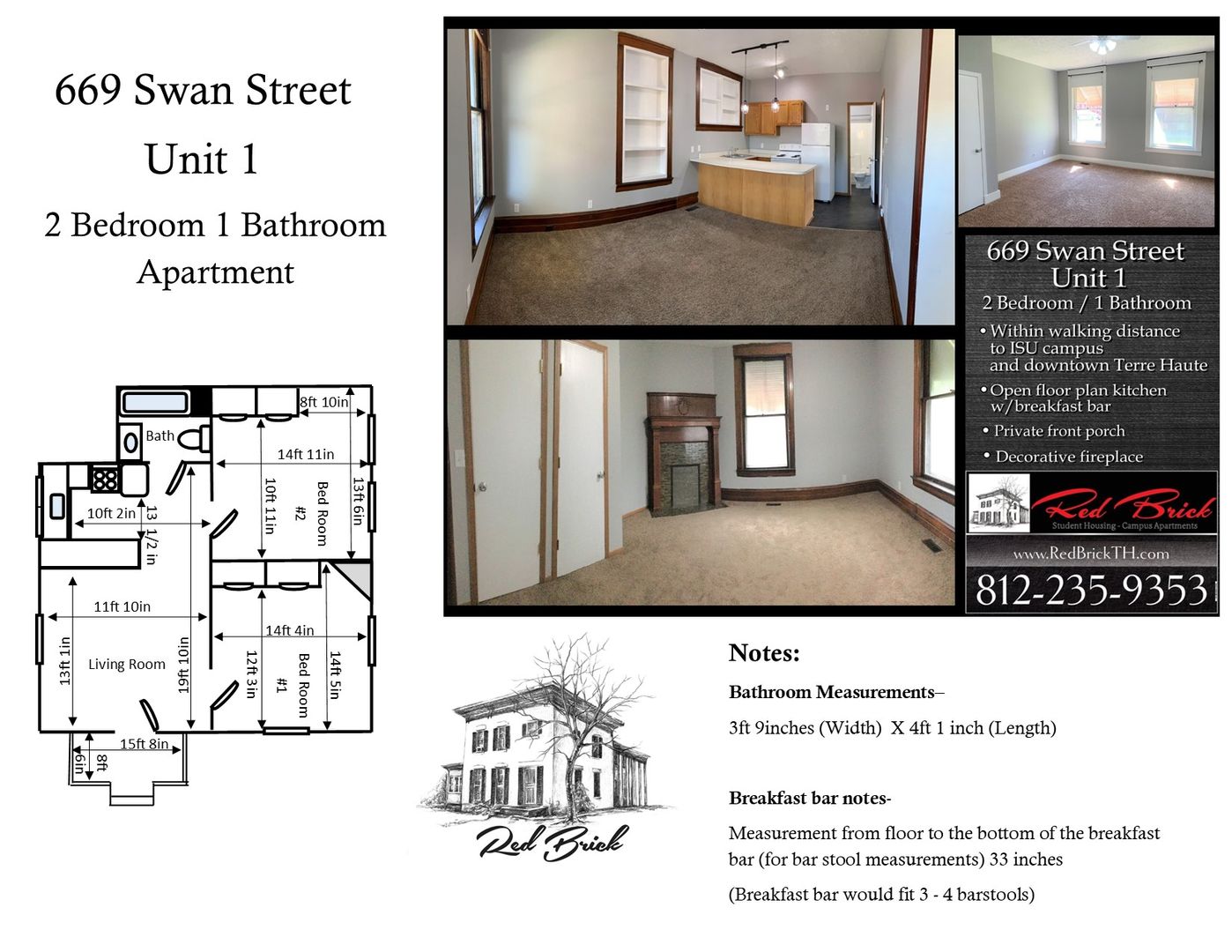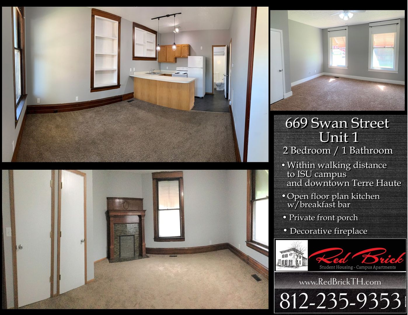 Now Accepting Applications for 1st floor 2 Bedroom 1 Bathroom Apartment at 669 Swan Street Unit 1 Within walking distance to ISU Campus and downtown Terre Haute