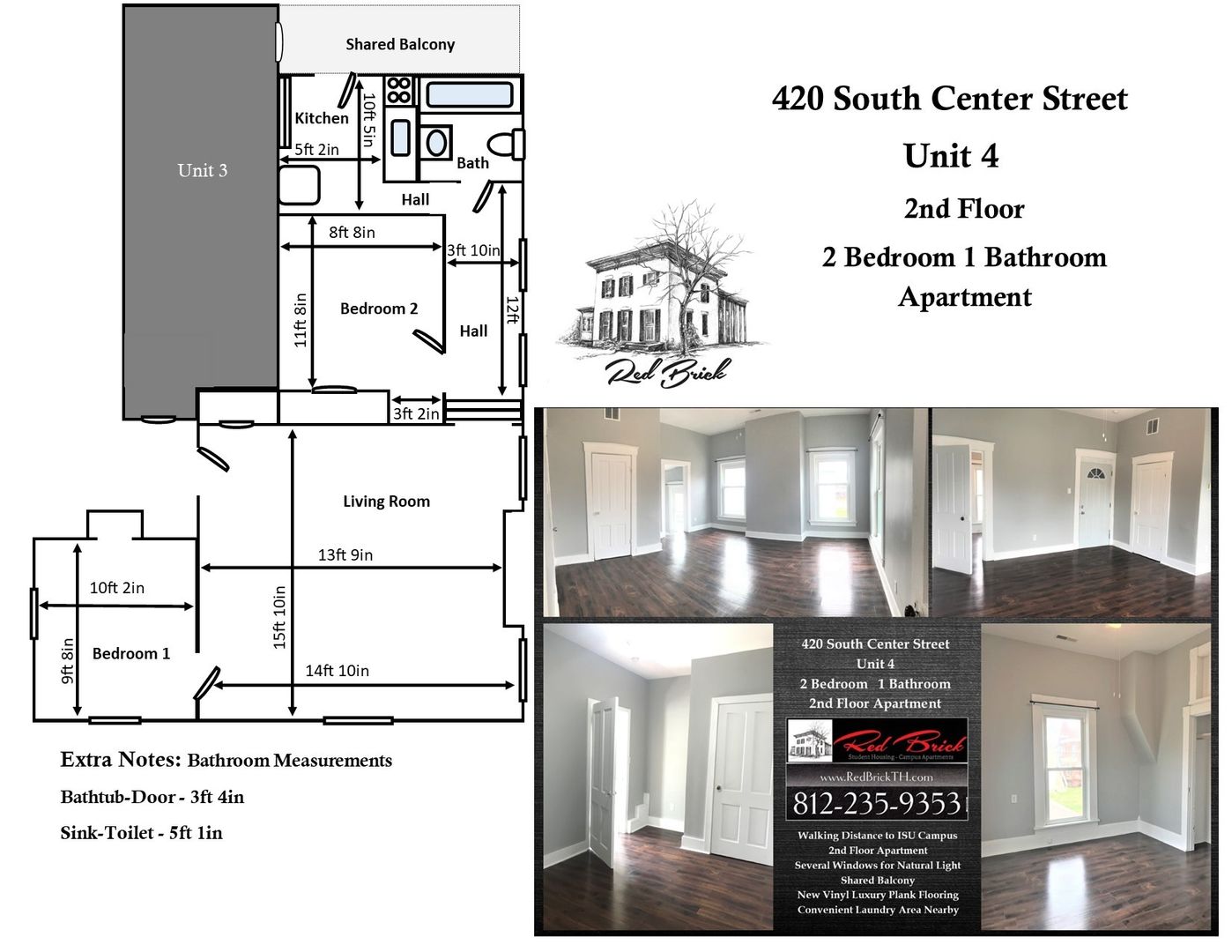 Now Accepting Applications for a Spacious 2nd floor 2 Bedroom 1 Bathroom Apartment at 420 South Center Street Unit 4 Within Walking Distance to ISU Campus.