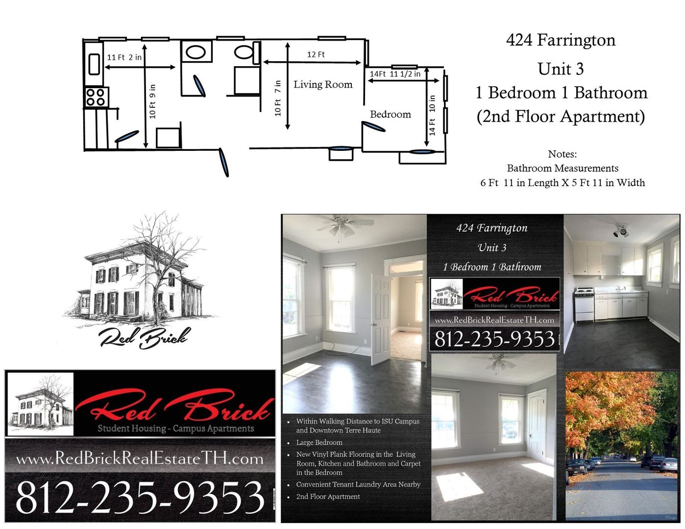 Now Accepting Applications for a 2nd Floor 1 Bedroom 1 Bathroom Apartment at 424 Farrington Unit 3 Within Walking Distance to ISU Campus