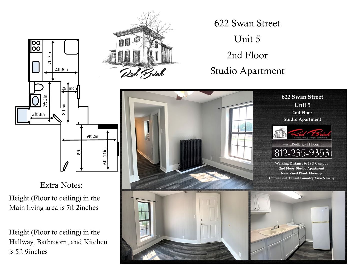 Within Walking Distance to ISU Campus- Now Accepting Applications for a 2nd Floor Studio Apartment at 622 Swan Street Unit 5
