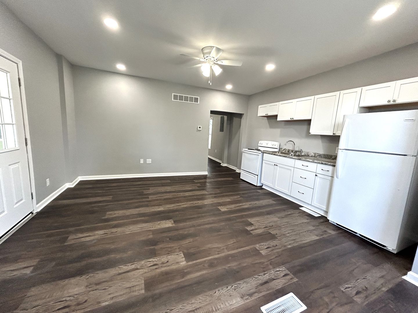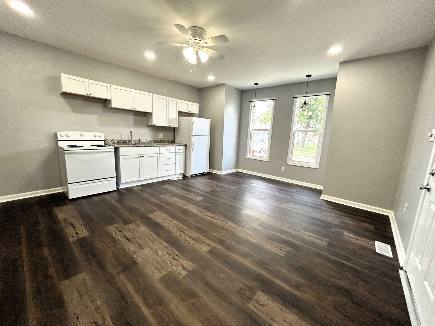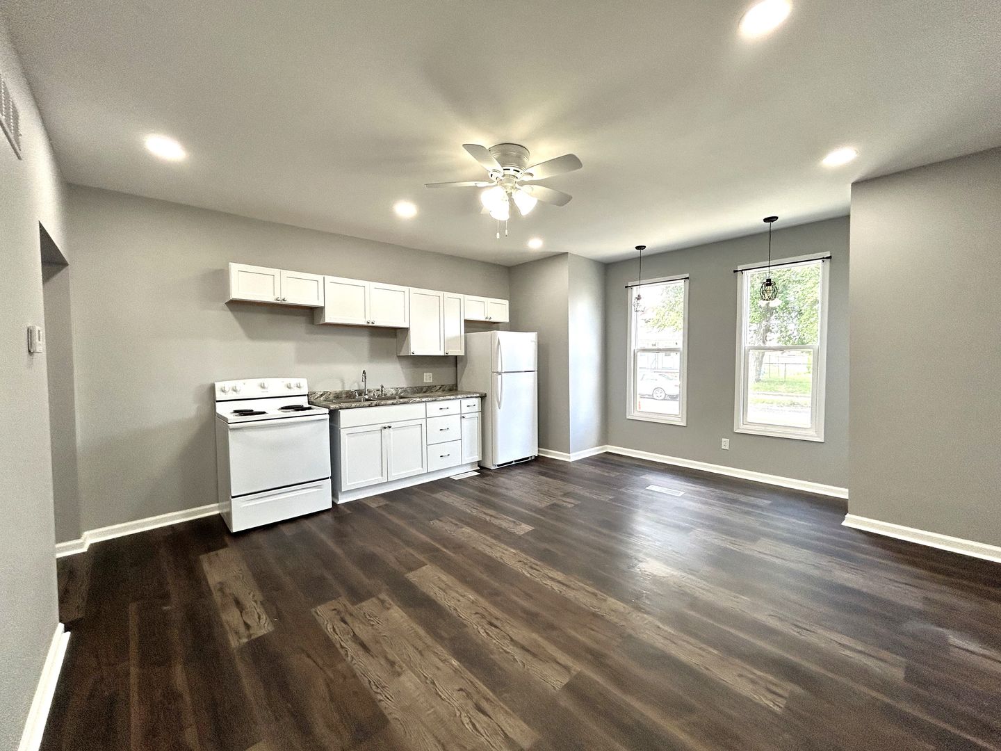 This Beautiful Recently Renovated Apartment Features a Kitchen Living room combo with a Bay window in the front room for natural light, built in shelving, Barn Door on the Bedroom, New Luxury Vinyl Plank Flooring Throughout, Updated lighting fixtures, New windows, Bath/Shower Combo in the Bathroom, Shared Porch with Private Entrance. On and Off Street Parking Available