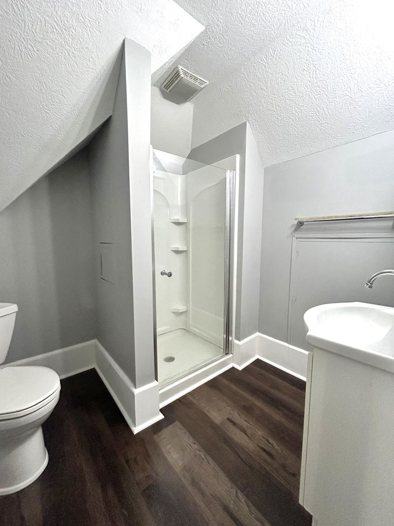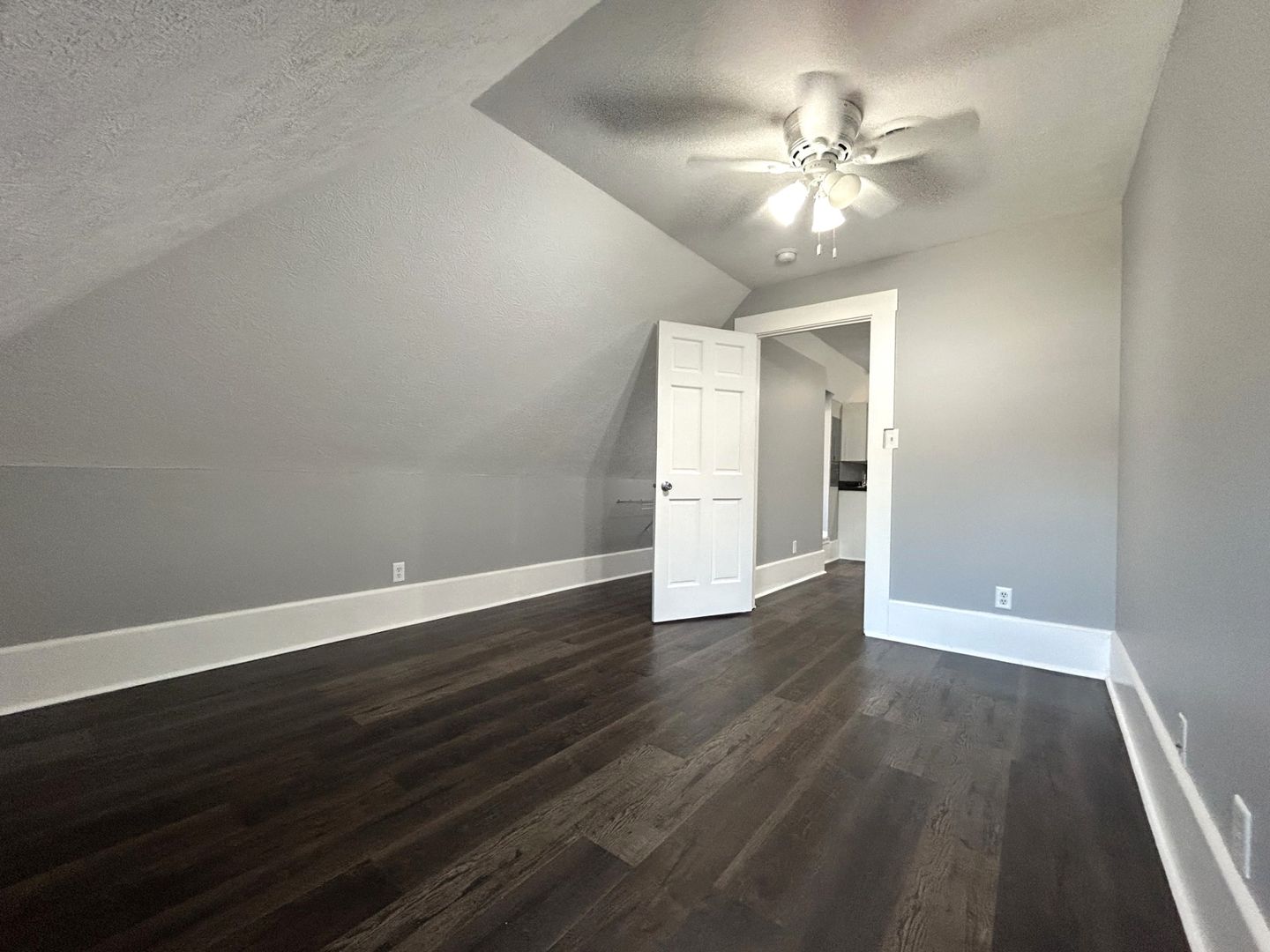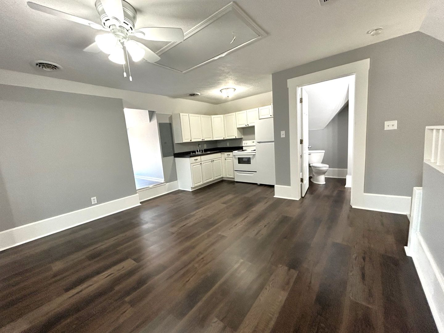 This Apartment is a recently renovated 2 Bedroom 1 Bathroom loft Apartment with newer paint, newer Carpet, Newer Vinyl flooring in the kitchen and bathroom, new appliances, new bathroom fixtures, newer windows, newer plumbing/electrical, newer roof. Stand up shower in the bathroom, open concept kitchen/living room, Convenient Tenant Laundry area is nearby