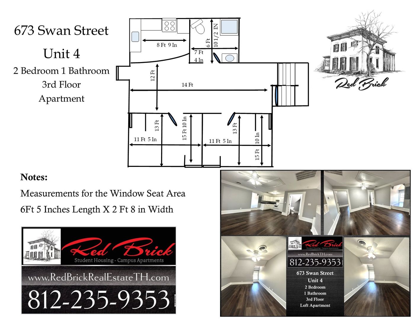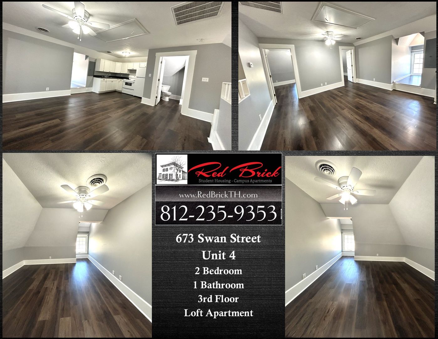 Now Accepting Applications for a 3rd Floor 2 Bedroom 1 Bathroom Loft Apartment at 673 Swan Street Unit 4 Within Walking Distance to ISU Campus.