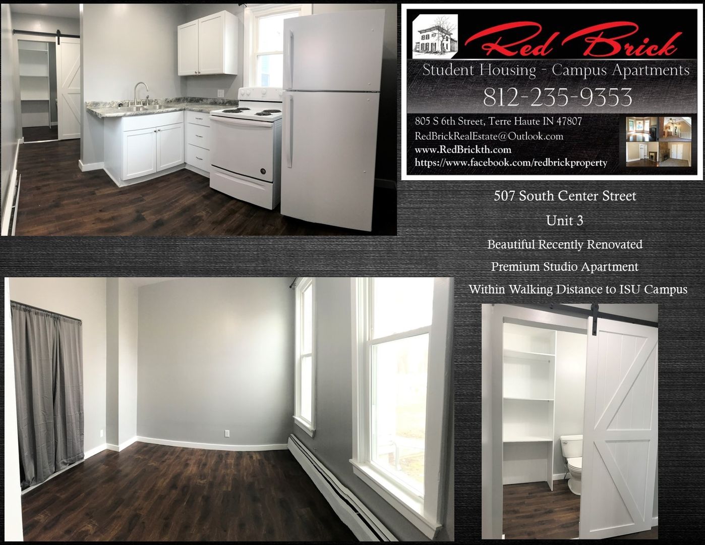 Now Accepting Applications for a 1st Floor Premium Studio Apartment at 507 South Center Street Unit 3