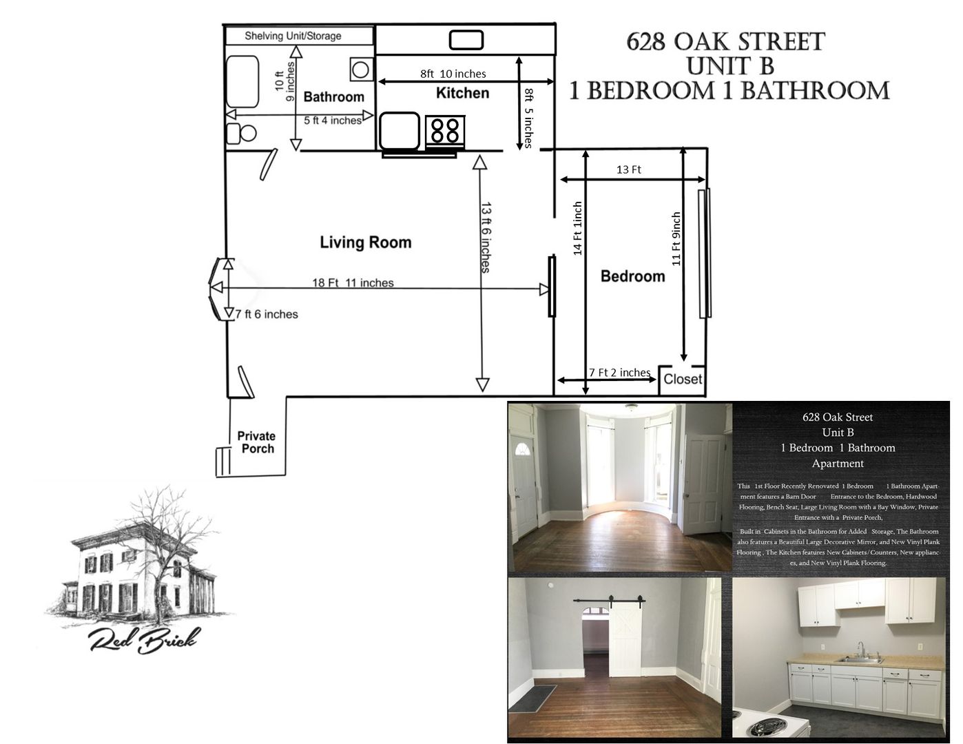 This Beautiful Recently Renovated Apartment Features Many Unique Aspects that adds Character to this Apartment such as a Private Porch Area, Private Entrance, Large Bay Windows in the Living Room for Natural Light, A Decorative Mantle, A Beautiful Barn door on the Bedroom, Hardwood in the Living Room and Bedroom, New Vinyl Plank Floor in the Kitchen, and Bathroom, Amazing cabinetry in the bathroom for added storage and a large Mirror that is a must see. The Bedroom is Spacious. New Fixtures and Appliances, Refrigerator/stove are provided.