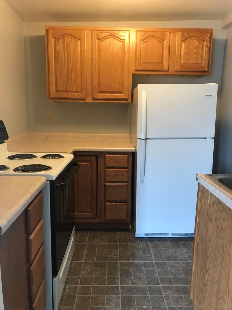 This Apartment Features, a Private Entrance, Decorative Fireplace in the living room, Bath/Shower Combo, Carpet Flooring in Both Bedrooms, on and off street parking available, stove and refrigerator provided with apartment. Convenient Tenant