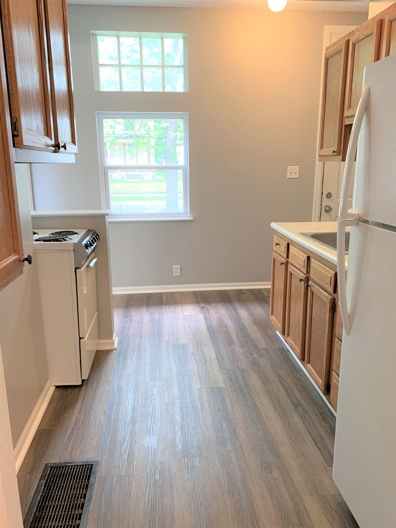 This 1st floor 1 Bedroom 1 Bathroom Apartment at 700 South 6th Street Unit 2 Features a Private Entrance, Several Windows for Natural Light, A Decorative Mantle, New luxury Vinyl Plank Flooring, Newer Windows, and Newer Paint.